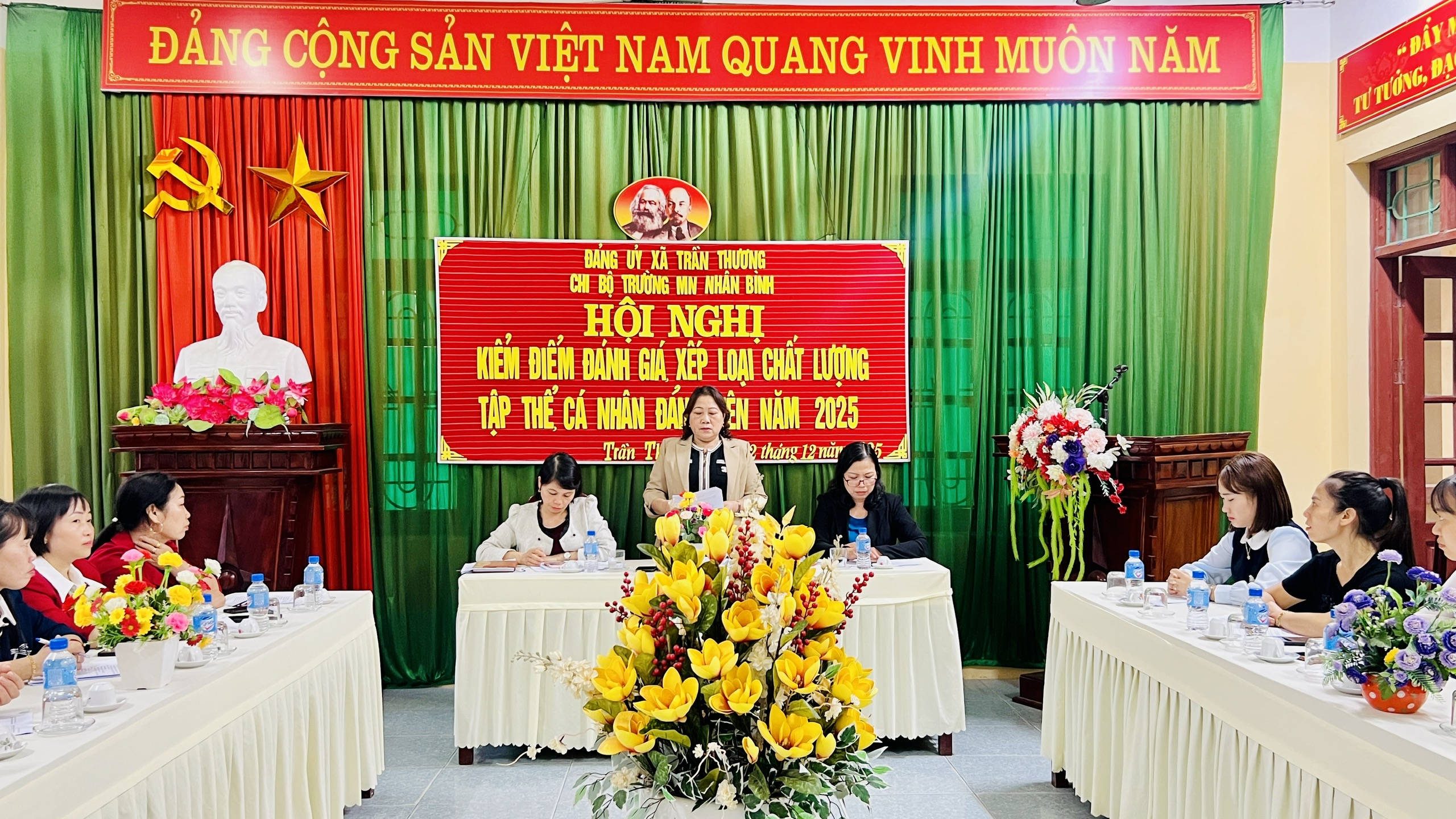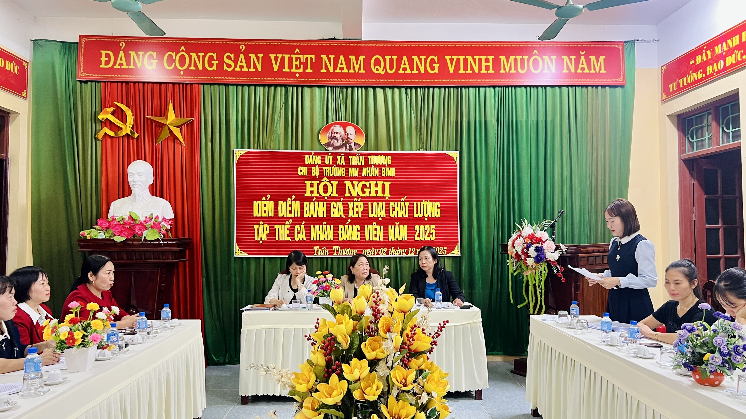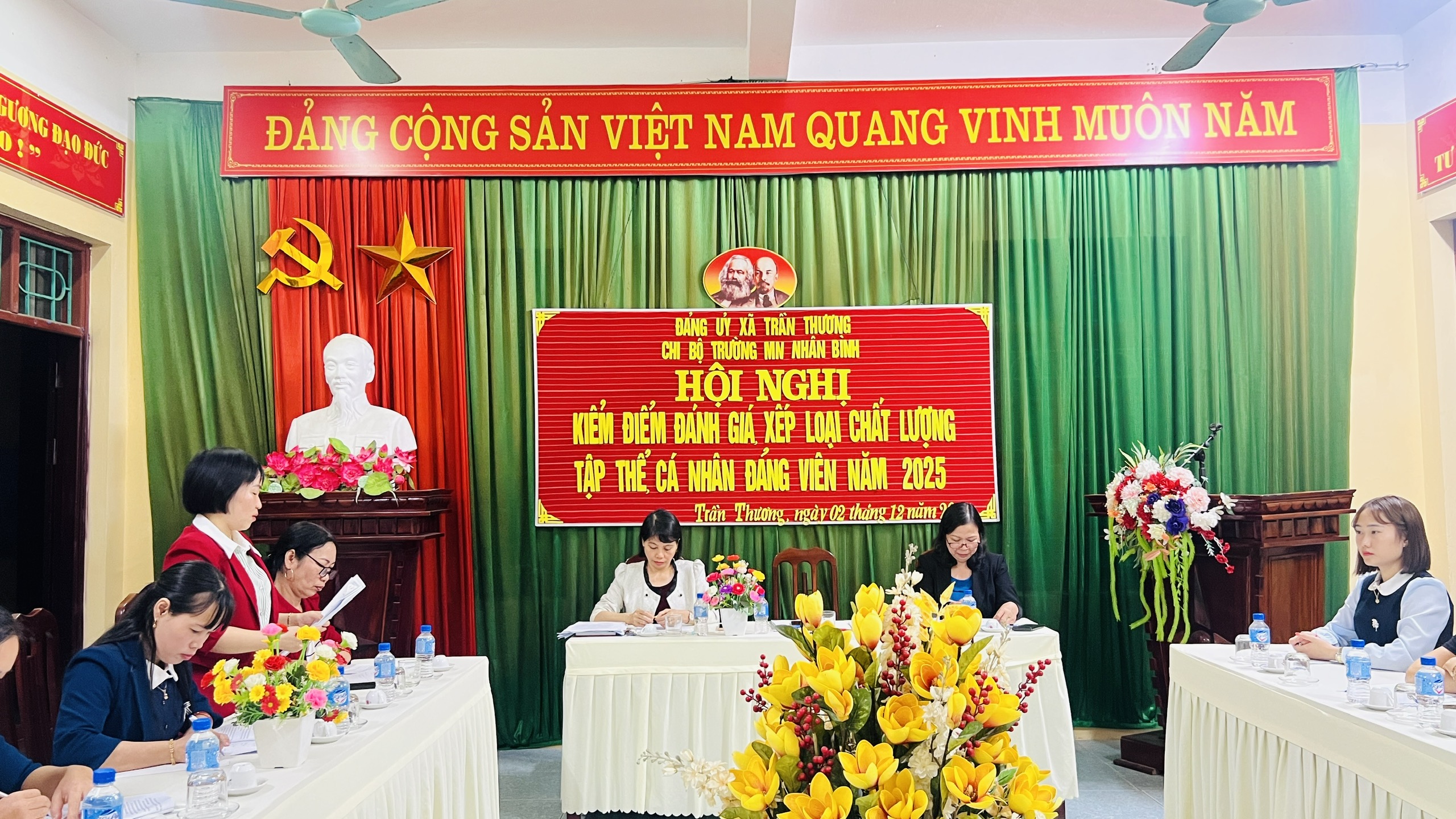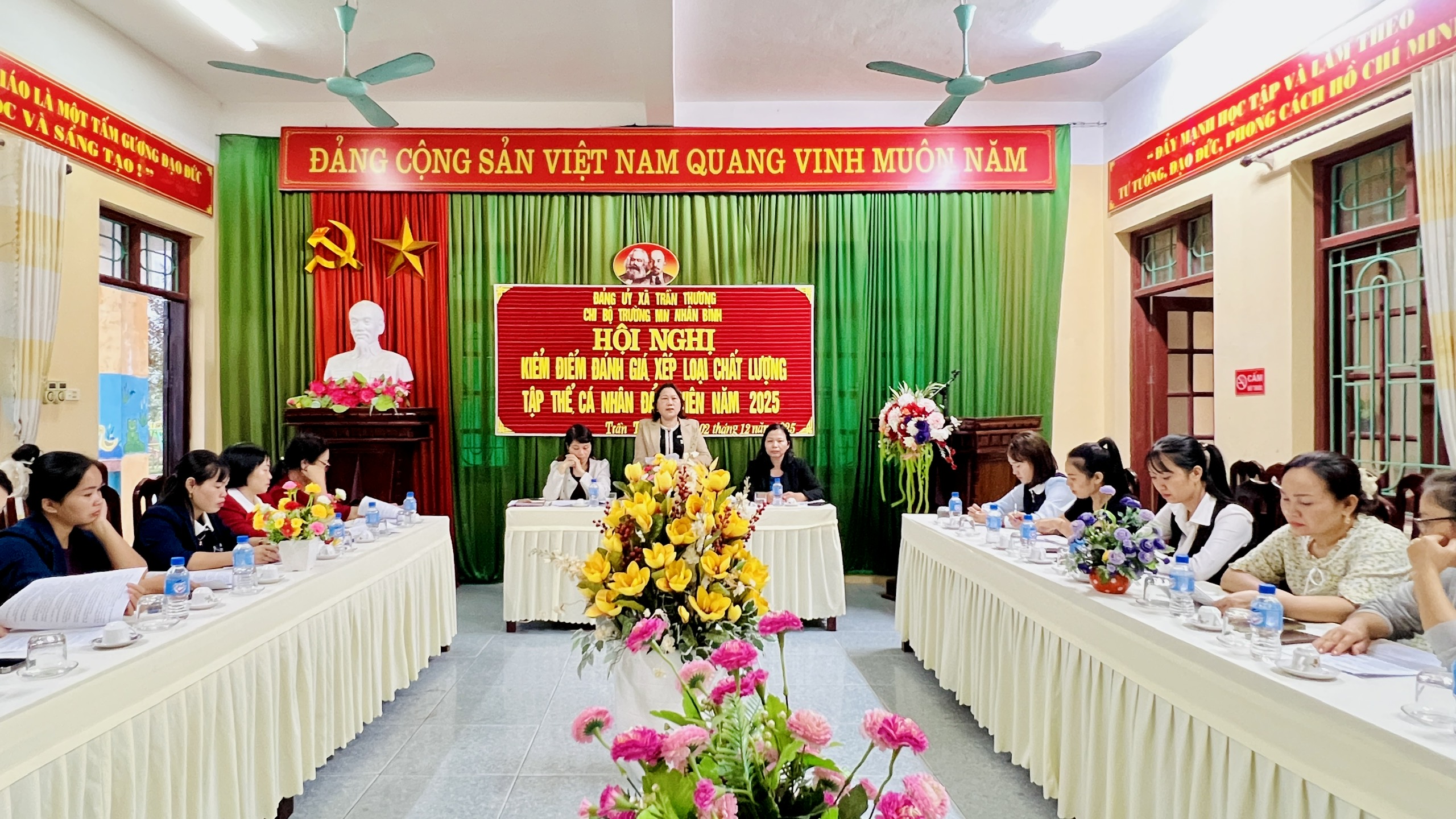 Chiều ngày 02/12/2025, Chi bộ Trường Mầm non Nhân Bình đã tổ chức Hội nghị kiểm điểm và đánh giá, xếp loại chất lượng đối với tập thể chi ủy, chi bộ và cá nhân Đảng viên năm 2025.