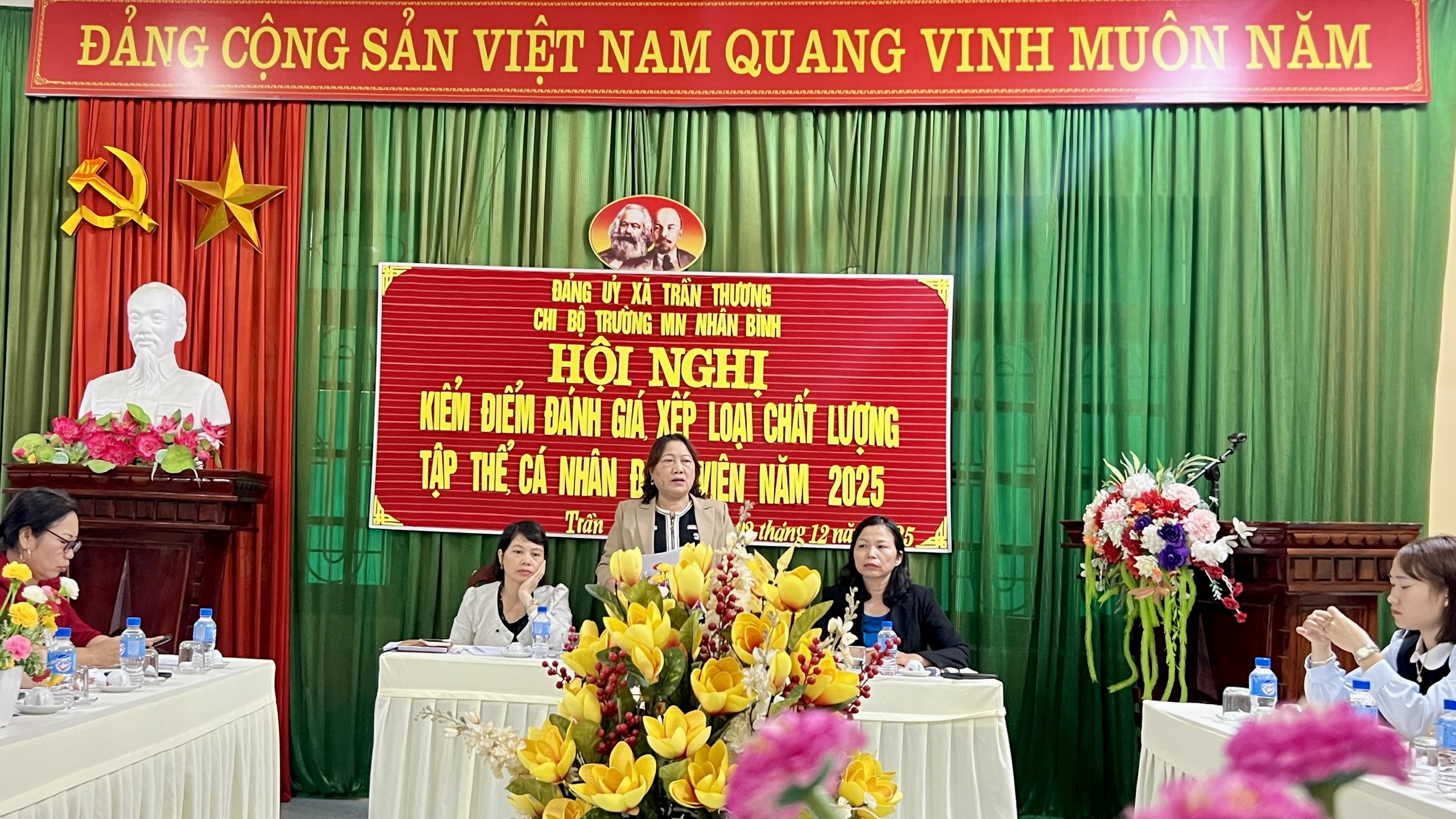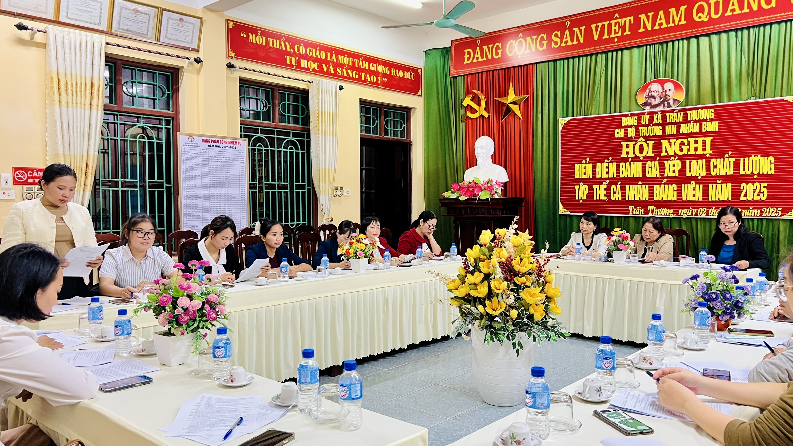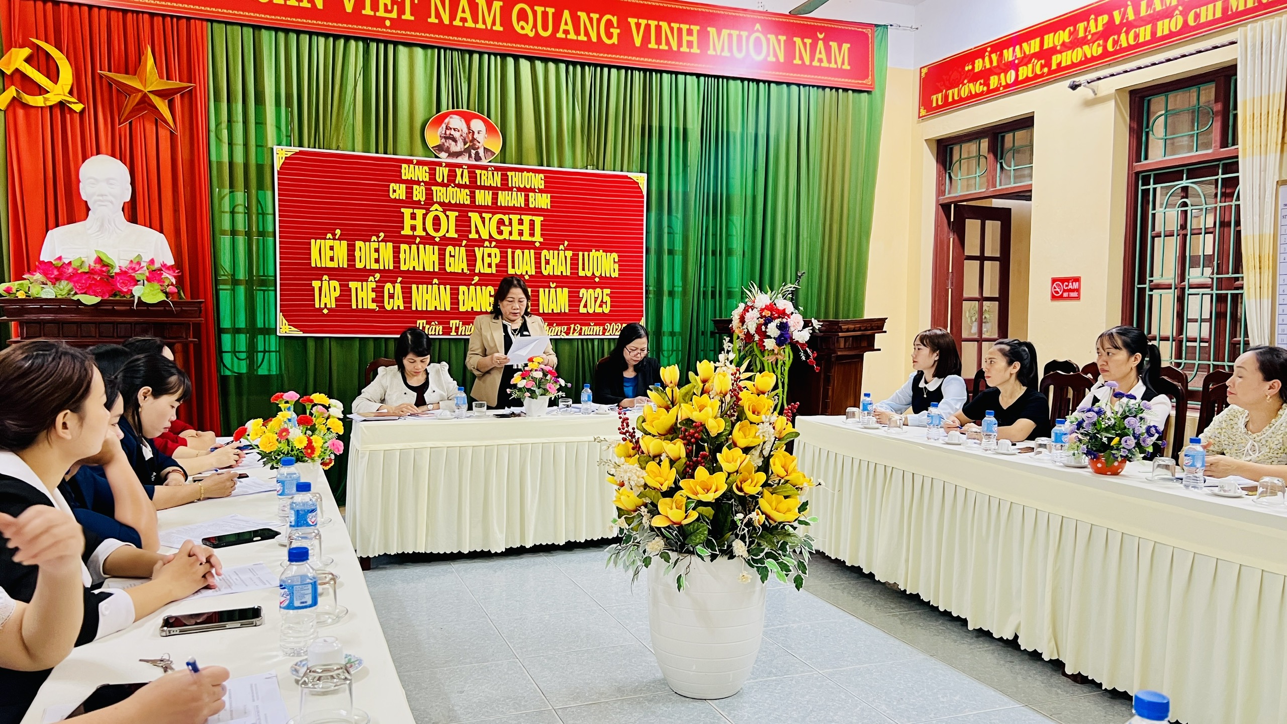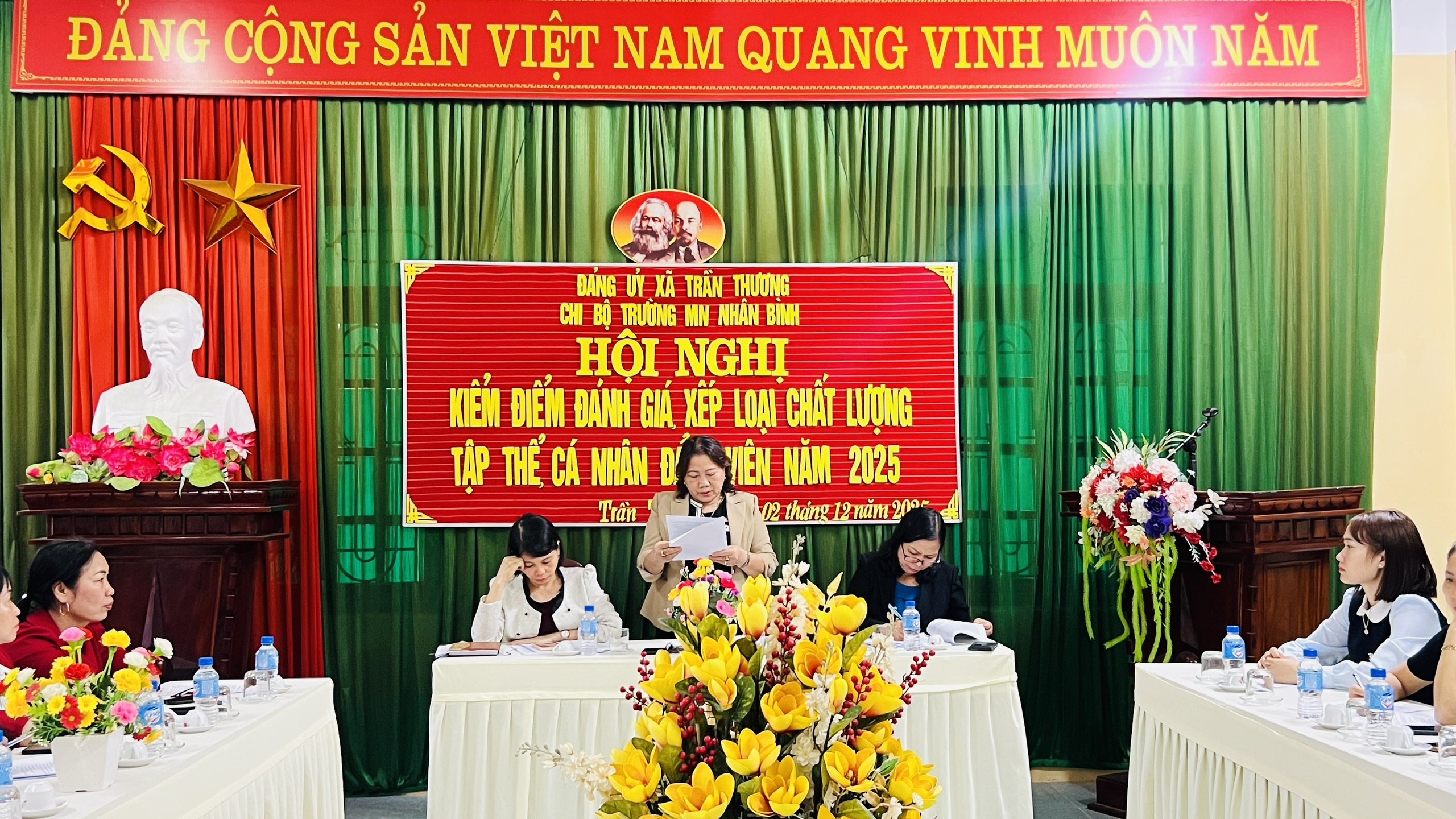 Chiều ngày 02/12/2025, Chi bộ Trường Mầm non Nhân Bình đã tổ chức Hội nghị kiểm điểm và đánh giá, xếp loại chất lượng đối với tập thể chi ủy, chi bộ và cá nhân Đảng viên năm 2025.