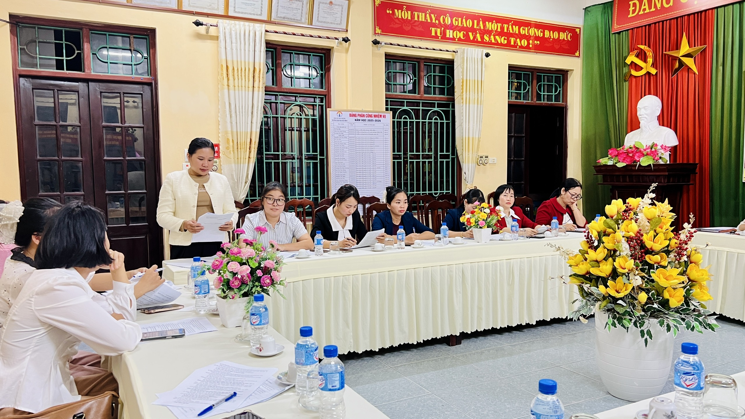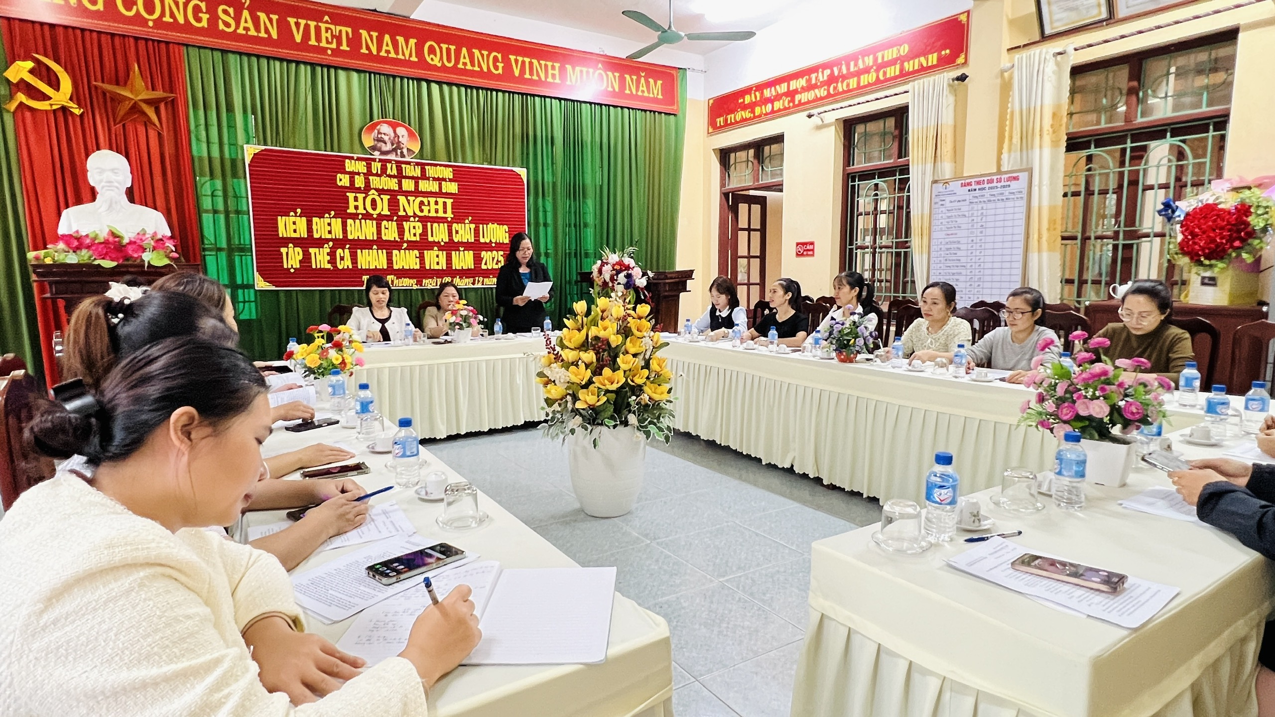 Chi bộ trường Mầm non Nhân Bình tổ chức hội nghị kiểm điểm, đánh giá xếp loại tập thể chi bộ và đảng viên năm 2025.