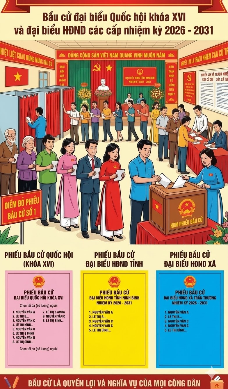 Ngày 15/3/2026 tới đây, cử tri cả nước sẽ tham gia bầu cử đại biểu Quốc hội khóa XVI và đại biểu Hội đồng nhân dân các cấp nhiệm kỳ 2026 – 2031. Đây là sự kiện chính trị quan trọng của đất nước, là ngày hội lớn của toàn dân, thể hiện quyền làm chủ của nhân dân trong việc lựa chọn những người đại diện cho ý chí, nguyện vọng của mình.